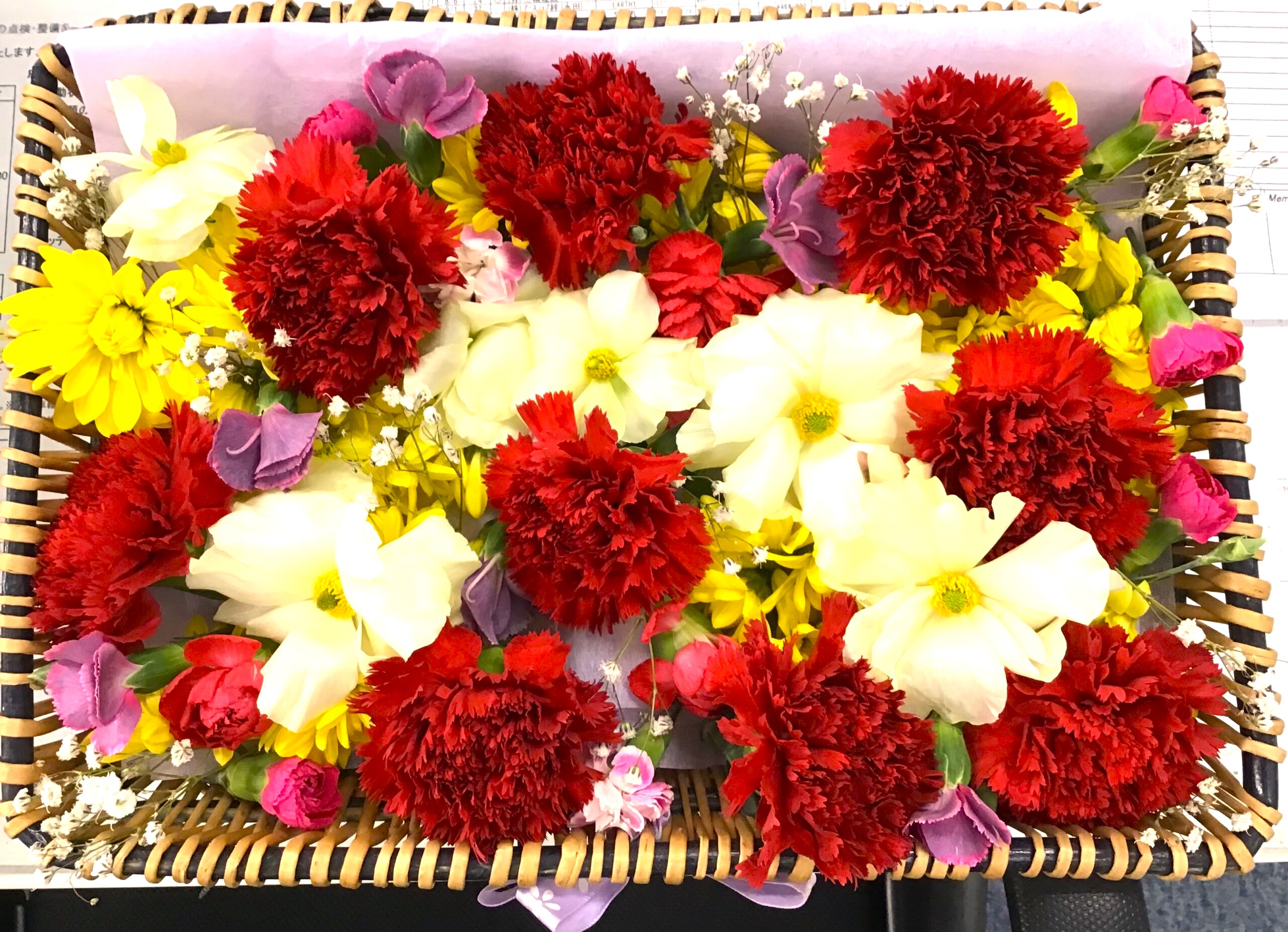 献花にはカーネーションが入っており